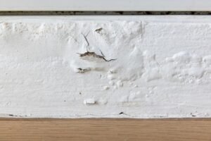 This is the most common cause of peeling on Jacksonville homes by a significant margin. Water gets behind the paint film — through a crack, a failed caulk joint, a gap around a window frame, or anywhere the paint film has thinned or failed — and once it is there, it has nowhere to go. It sits against the substrate, weakening the bond between paint and surface with every wet-dry cycle until the paint simply loses its grip and lifts away.